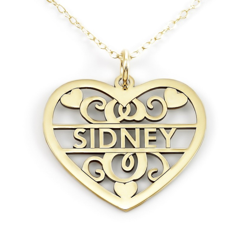 AJ's Collection Sterling Silver Fancy Heart Initial and Name Necklace. Choice of 925, 14k Gold Plate, or Rose Gold Plate Over Sterling Silver
