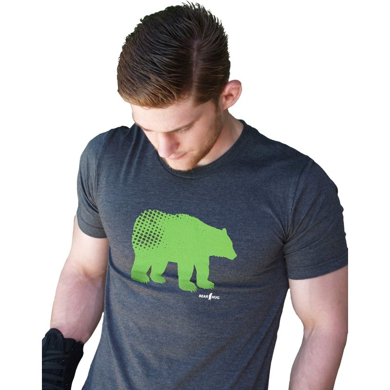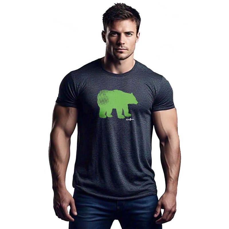 Join us for a big ol' bear hug. A clean, modern interpretation of the bear theme, 2-color graphic on charcoal gray heather shirt. We upgraded our Bear offerings to be more modern, masculine, playful, and sexy. The shirt is a premium heather, super soft, light weight with a fitted (but not banded) sleeve and side-seamed for better quality and fit. Honestly, it's a gorgeous, sexy shirt.