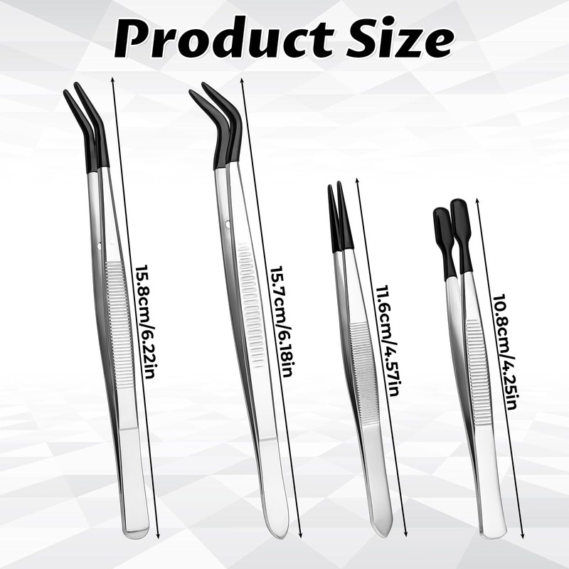 - 【Package Contents】This set includes 4 versatile tweezers - 1 rubber fine point, 1 rubber flat tip, and 2 long bent tweezers, perfect for various crafting and precision tasks.