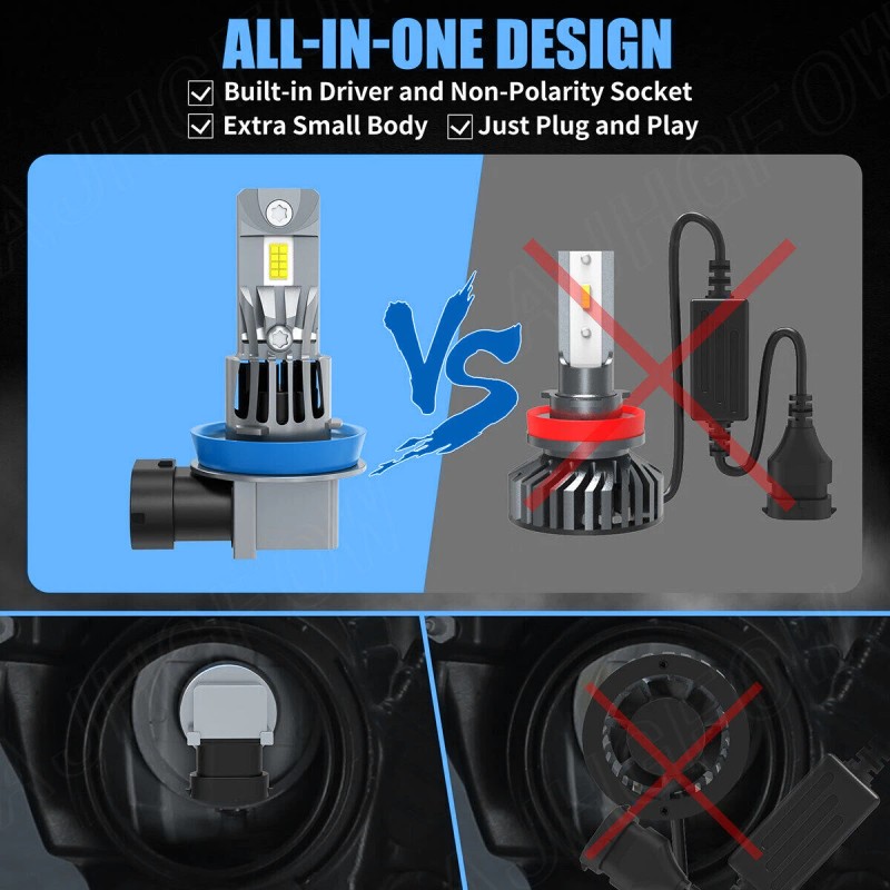 Our LED headlight bulbs with compact size and non-polarized design can make you install them in minutes.Other modifications are not required.