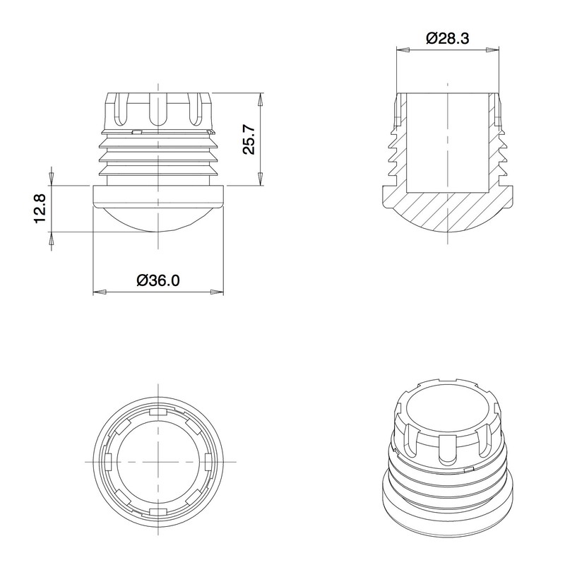 ajile Anti-Slip Fusska Wiping Cloth Reinforced VULKANIS Alloy Rubber Cane Caps Light Curved Black For Furniture with 35 mm Outer Diameter – 4 Piece – EHC135X4 FBA