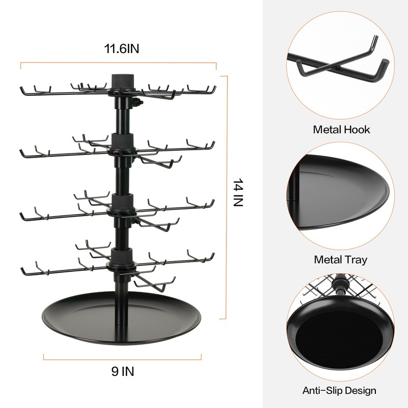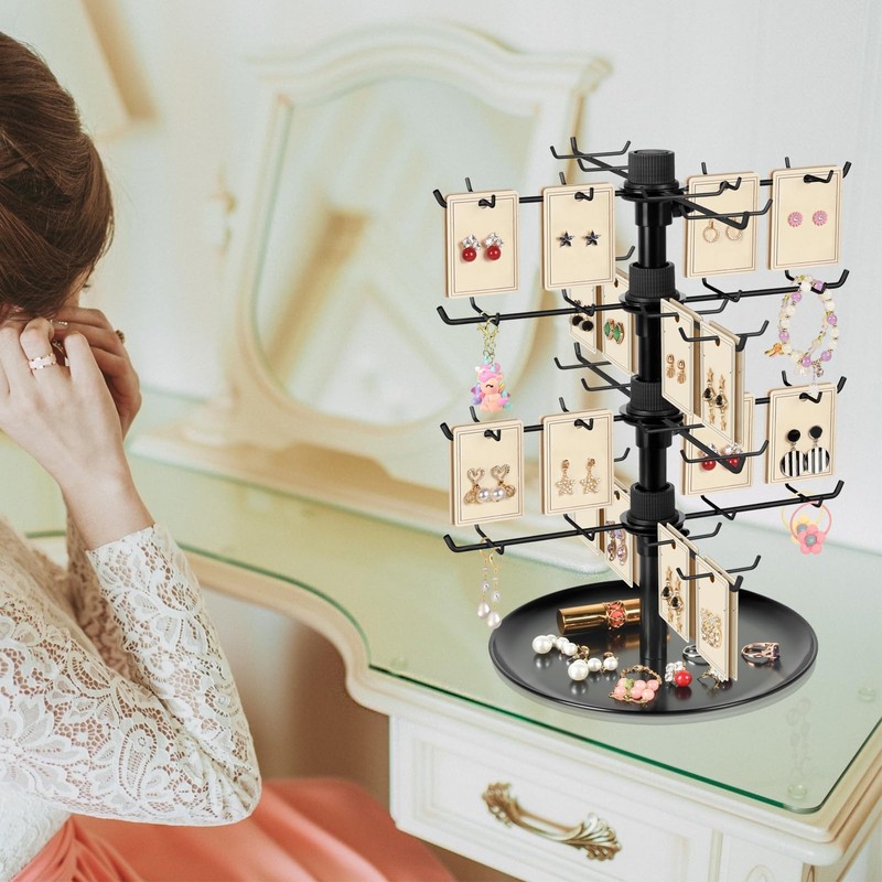 - Easy to Assemble: This rotating earring display stand is uniquely designed with a 4-tier 360-degree swivel structure, you can easily adjust the height and number of tiers to fit different types of items. No tools are required, just follow the simple instructions to complete the installation.