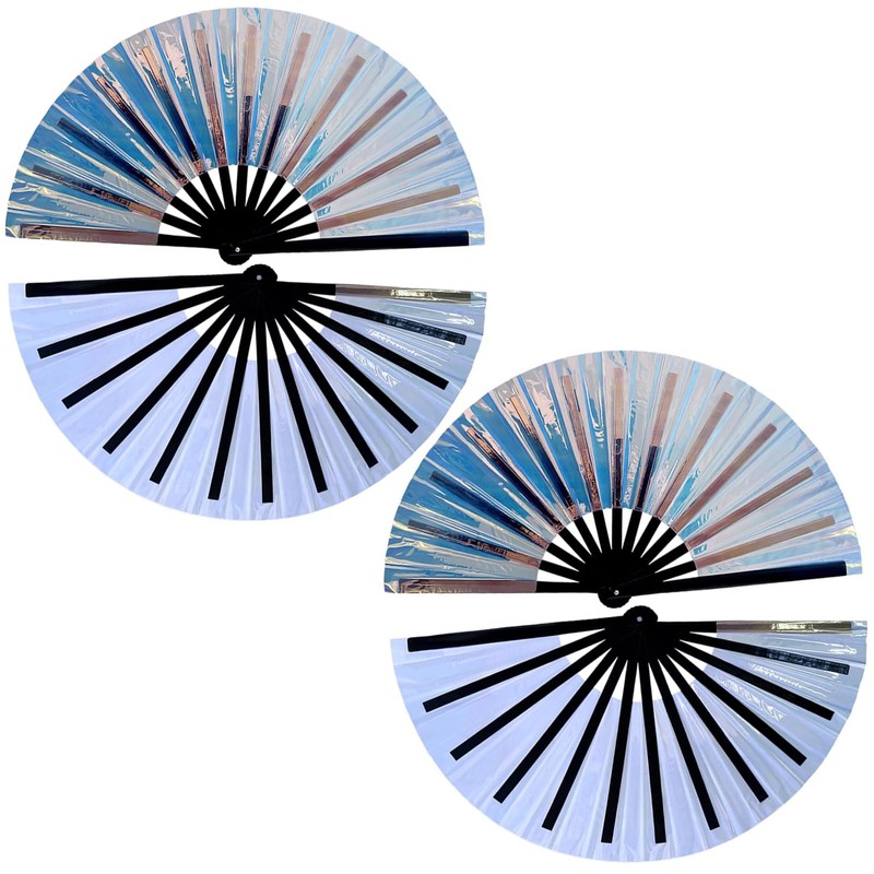 • LARGE FOLDING DESIGN, DURABLE AND PORTABLE:Measuring 13 inches folded and 24.5 inches unfolded, this oversized hand fan is made from sturdy bamboo ribs and holographic PVC. A large folding fan handheld that’s easy to carry, highly durable, and ideal for high-frequency performance use without damage