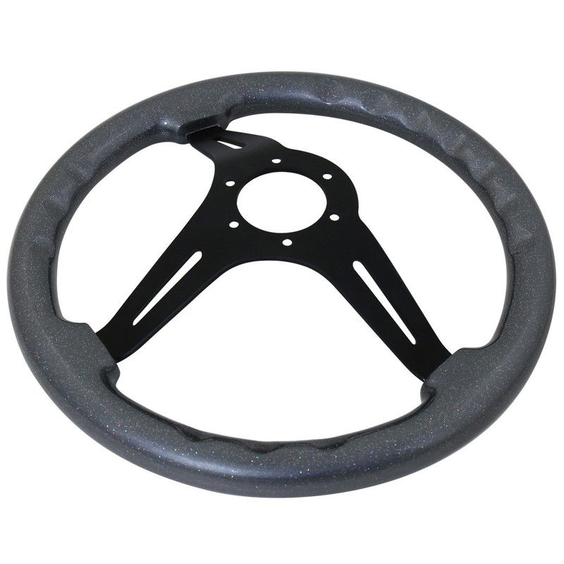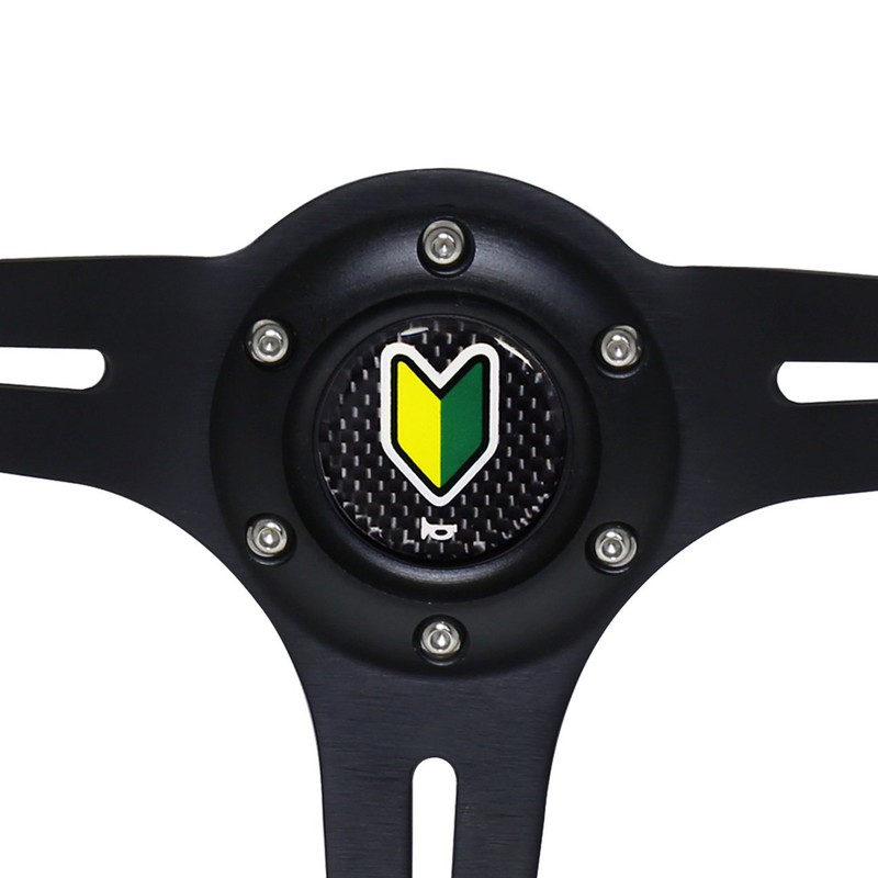 AJP Distributors Universal 345mm 6 Bolt Hole Deep Dish Black Gunmetal Wood Grain Black Inner Center Light Weigt 3 Spokes Streak Design Steering Wheel Jdm Wakaba Horn Button Replacement Upgrade