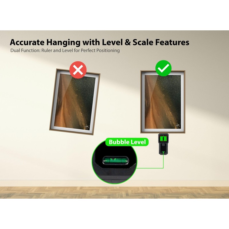 - Built-in Bubble Level & Ruler Scale – Features an integrated spirit level for picture-perfect alignment when hanging shelves, mirrors, and frames. Ensures accurate positioning and dual-purpose usability for home improvement tasks.