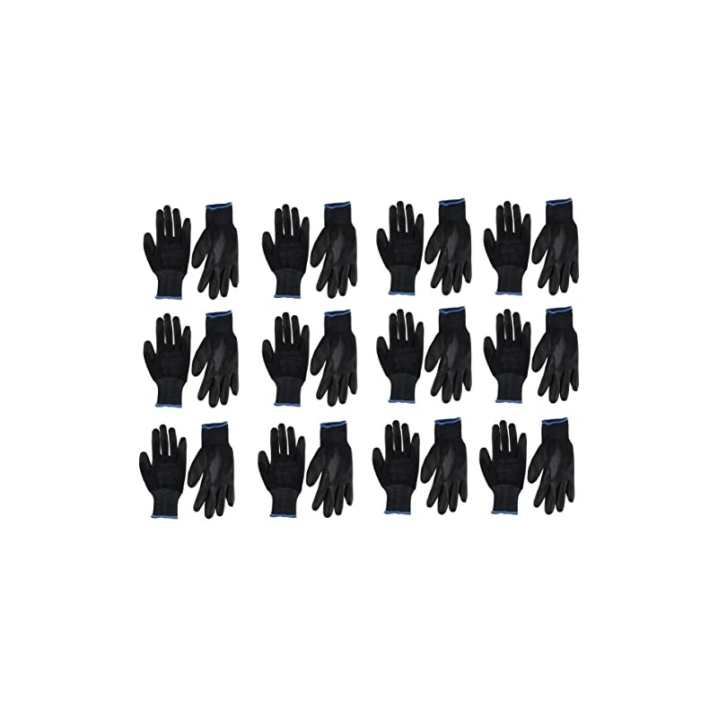 AJS Workwear Ltd Work Gloves PU-Covered Nylon for Gardening, Building Site and Mechanics – Black – Packs of 12 or 24 Pairs
