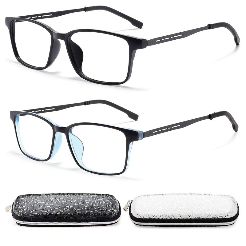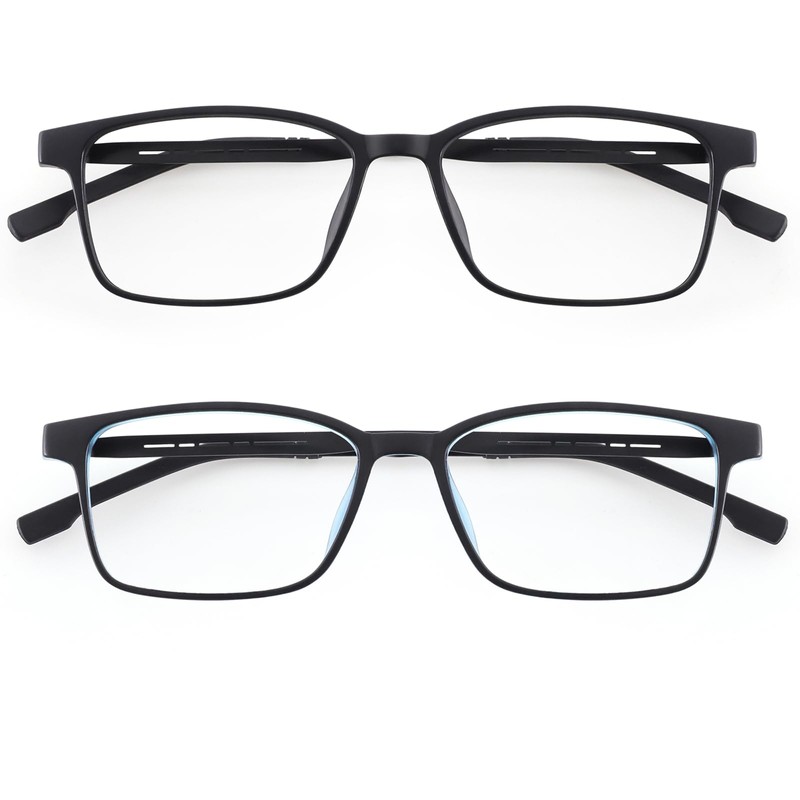 - *2-Pack Classic Rectangle Frames*Timeless unisex rectangle design (143mm width) in versatile black + blue. Scratch-resistant lenses included – perfect home/office/travel backup set.