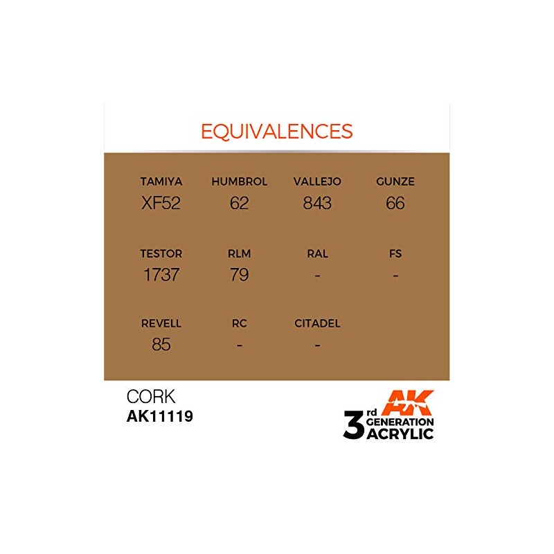 - AK Interactive AK 11119 3rd Generation Acrylic, Cork - 17 ML / 0.58 Fl.Oz Jar.