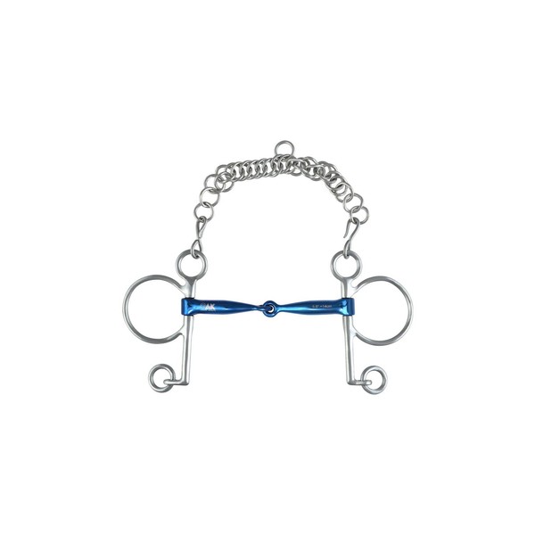 AK Pelham Bit with Single Joint with Curb Chain Horse Riding Bits AKRS-2608 (5.00'', Blue-Silver)