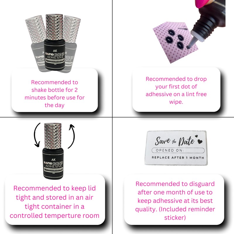 AK Rapid Bond Lash Adhesive, 5ml, 0.5 Second Dry Time, 7-8 Week Hold, Low Fume