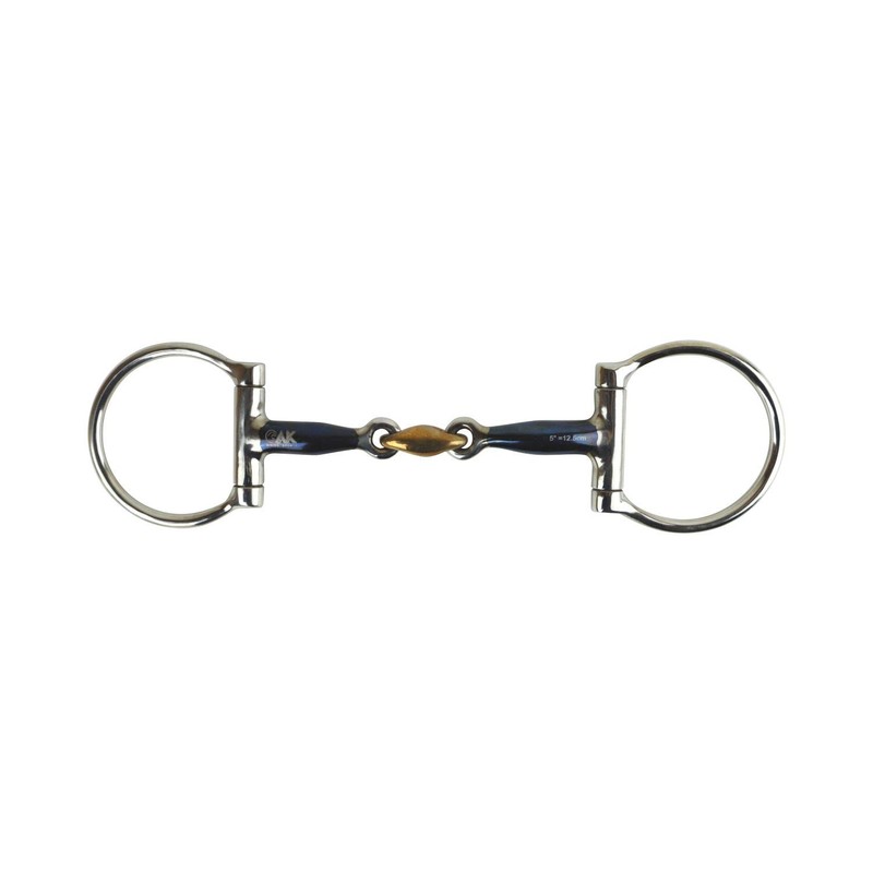 AK Sweat Iron D-Ring Double Jointed Lozenge with Cooper Joint Horse Riding Bits AKRS-2604 (Blue-Silver, 5.50'')