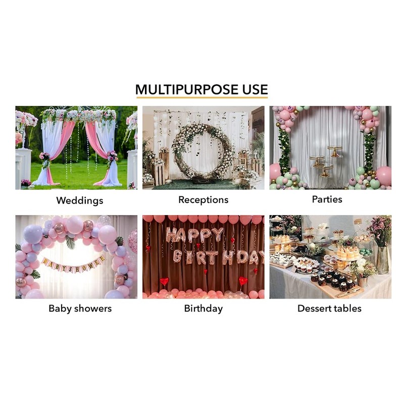 • ✅ USES: Perfect for weddings, receptions, parties, catered presentations, bridal and baby showers, birthdays, candy buffets, dessert tables and more. Used as drape for pipe and drape system also.