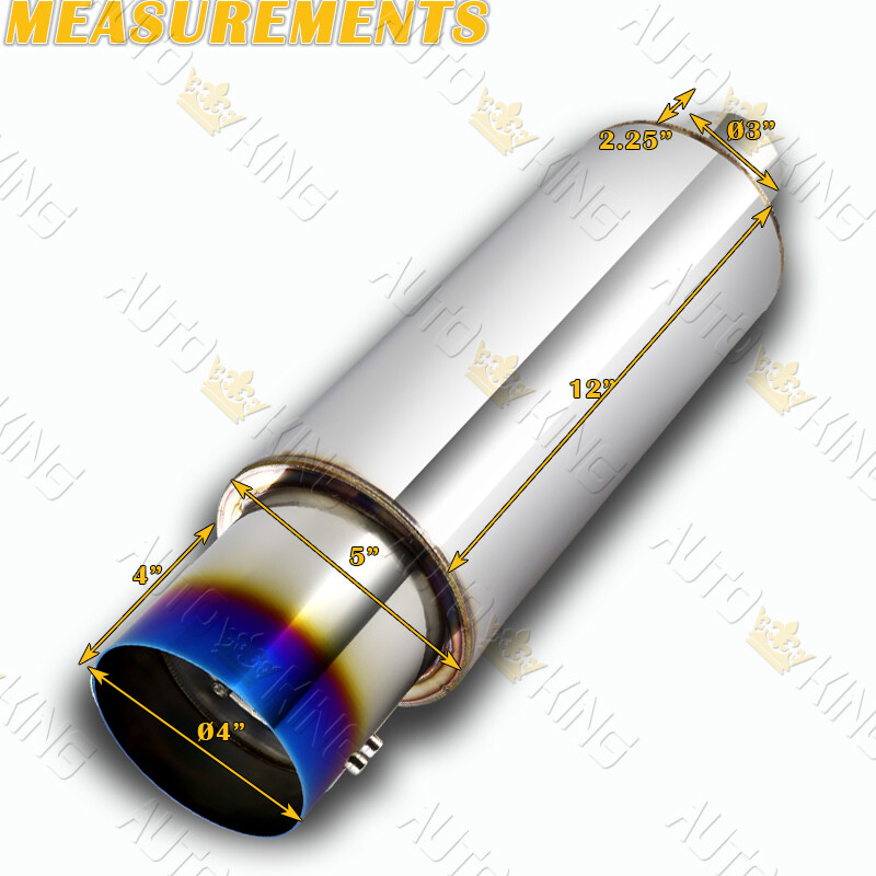 AK Universal 3" Inlet T-304 Stainless Steel Weld on Exhaust Muffler 4" Burnt N1 Tip