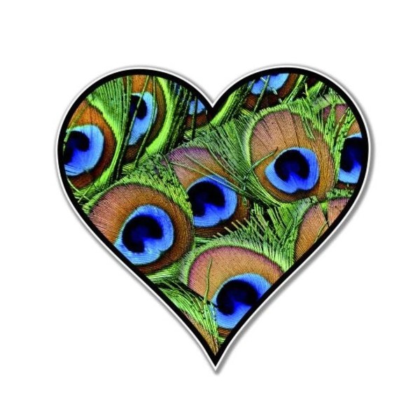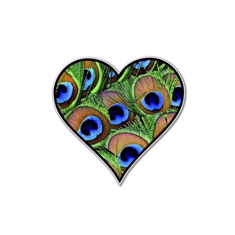 AK Wall Art Peacock Feather Heart Vinyl Sticker - SELECT SIZE - (A) X-Small: 2"