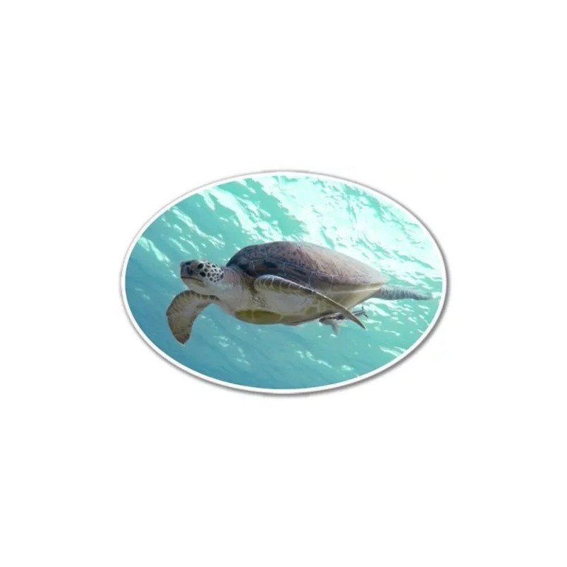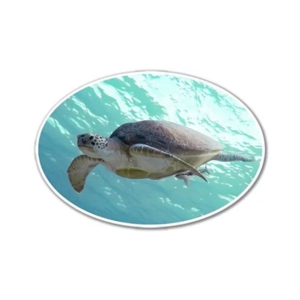 Turtle Swimming Oval Vinyl Sticker - SELECT SIZE