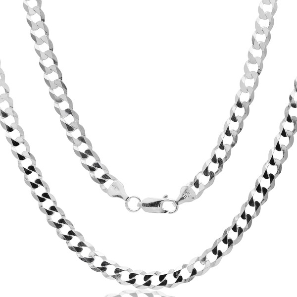 Aka Gioielli - 925 Sterling Silver Curb Cuban Link Chain 7mm - Necklace for Men and Women - Made in Italy - 22 inch long