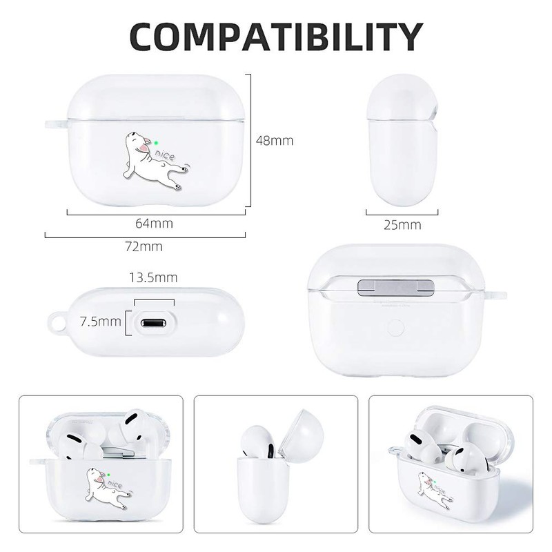 - Compatibility: perfect case compatible with Apple Airpods Pro 2019 (2019). Made by opening the mold, it fits perfectly into your Airpods Pro 2019 charging case. It has a charging port and also supports wireless charging. This 1.8 mm thick cover does not affect the radio connection. The split design allows the cover to open up to 90°