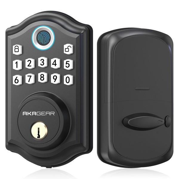 AkaGear Keyless Entry Door Lock with Fingerprint - Smart Door Lock, Electronic Keypad Deadbolt, Front Door Lock, Auto-Lock & One Touch Locking, Easy Installation - Matte Black