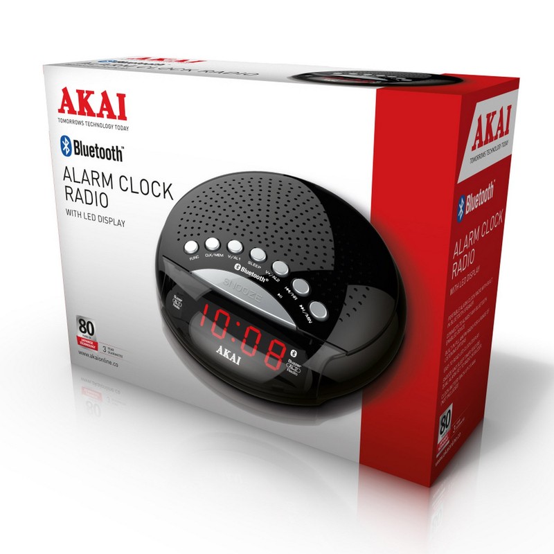 Akai Alarm Clock Radio with Bluetooth Speaker - Black