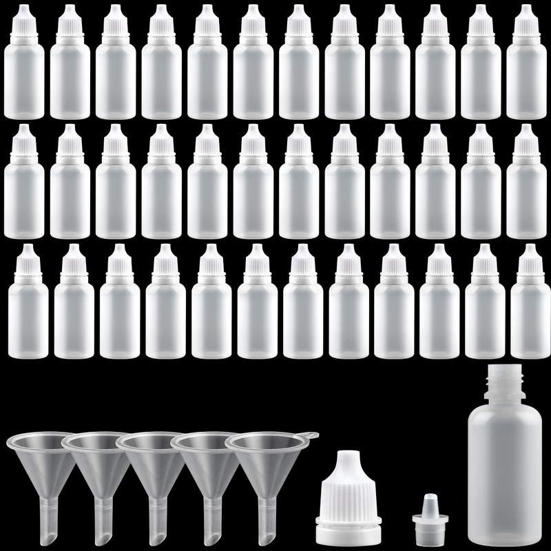 - PACKAGE INCLUDES: 100 plastic dropper bottles and 5 funnels. Ample quantity is enough for users to use for a variety of different purposes and daily replacement. Used with funnels, you can fill the liquid into the bottle more easily and accurately to avoid spillage.