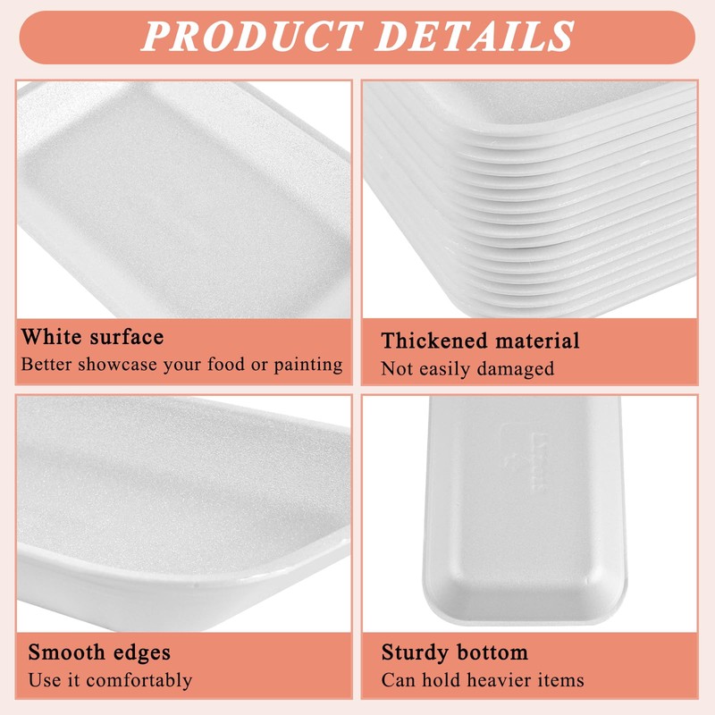 - Quality Material: The craft foam tray is made of food grade material, you can use it to place food confidently. The edges are smooth without burrs, making you comfortable to use, and the material is compact and thickened, and will not be easily damaged