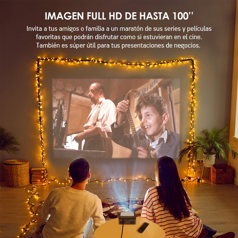 EL REGALO PERFECTO PARA CINÉFILOS Y SERIÉFILOS: Si conoces o vives con una persona que siempre está al pendiente de los últimos estrenos, regálale este proyector para que viva la emoción de disfrutar el más reciente capítulo de su serie preferida en una pantallota de hasta 100 pulgadas. Sorpréndelo con el mejor regalo de cumpleaños o considéralo desde ya en su lista de deseos para Navidad.
