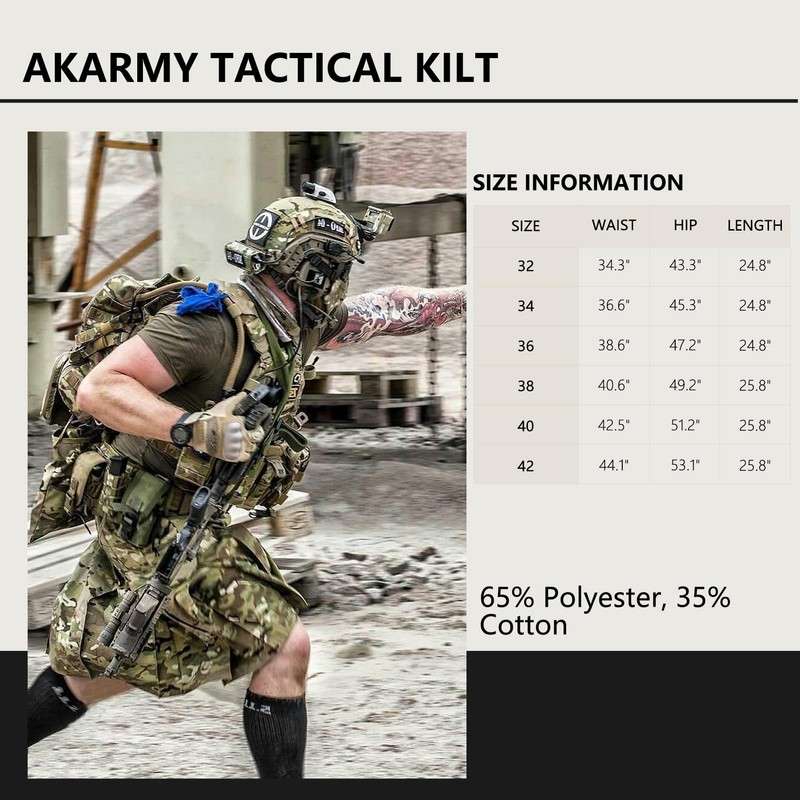AKARMY Men's Kilt for Men, Camo Scottish Outdoor Utility Pleated Tactical Kilt,Irish Highland Hybrid Kilts Kahki 42