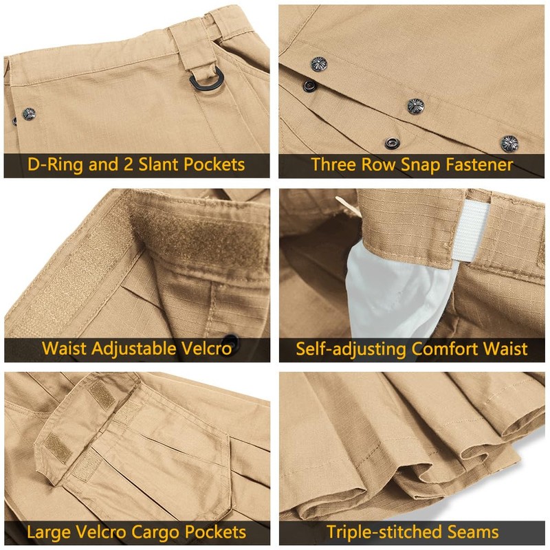 AKARMY Men's Kilt for Men, Camo Scottish Outdoor Utility Pleated Tactical Kilt,Irish Highland Hybrid Kilts Kahki 42