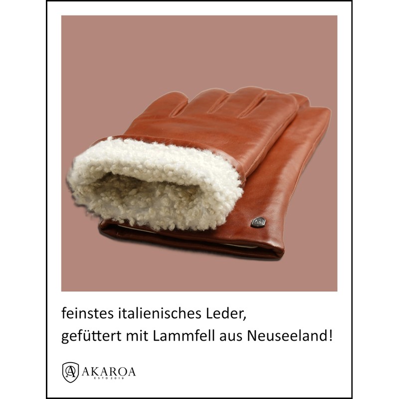 AKAROA ESTD 2019 MIA Women's Leather Gloves, Touchscreen Function, Italian Leather, Lining Made of Original New Zealand Lambskin, 4 Sizes S - XL, Mia Cognac