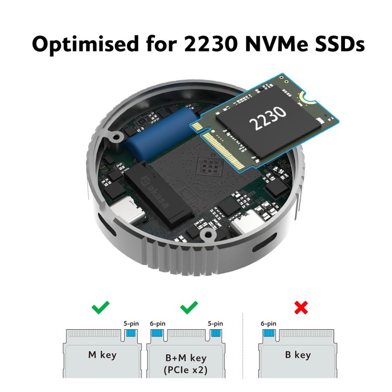 Akasa Magnetic 10Gbps Transfer, M.2 2230 PCIe NVMe SSD Aluminium Enclosure, C...