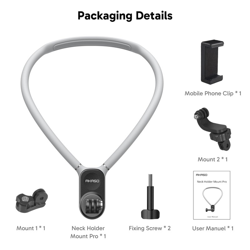 AKASO Magnetic Neck Mount Necklace Holder, Camera POV Mount Compatible with All AKASO Action Camera Models, Hero12/11/10/9/8/7/6/5/4/MAX, Osmo Action and Most Action Cameras