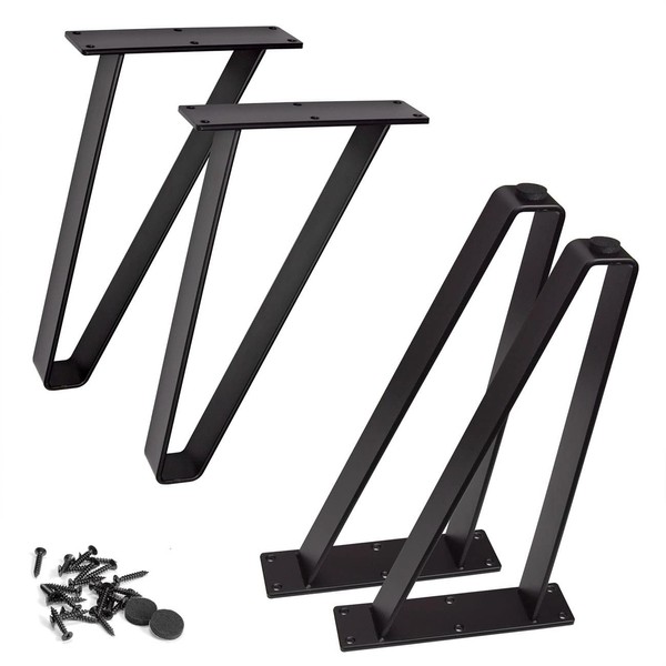 AKB Hardware Heavy Duty Solid Steel Slanted V Style Sofa Legs, Metal Furniture Legs, Table Legs, Bench Legs- Set of 4 New (12" H SlantStyle, Black)