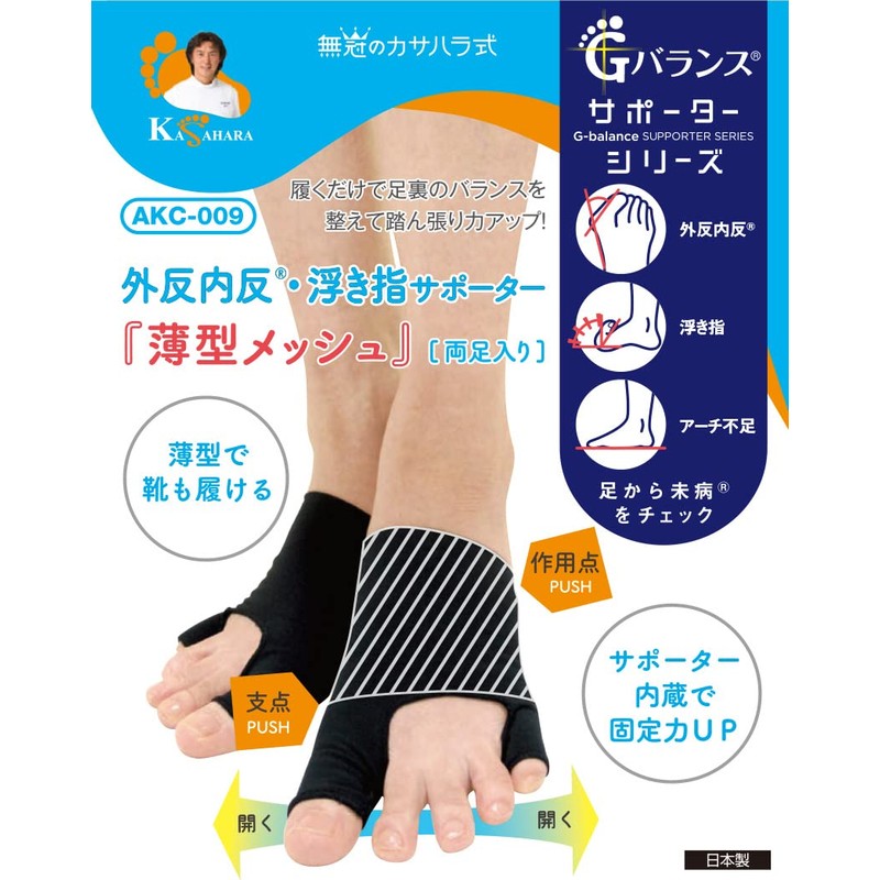 【公式】外反母趾・浮き指のカサハラ式/外反内反・浮き指サポーター【薄型メッシュ】 (両足入り)/AKC-009 (M)