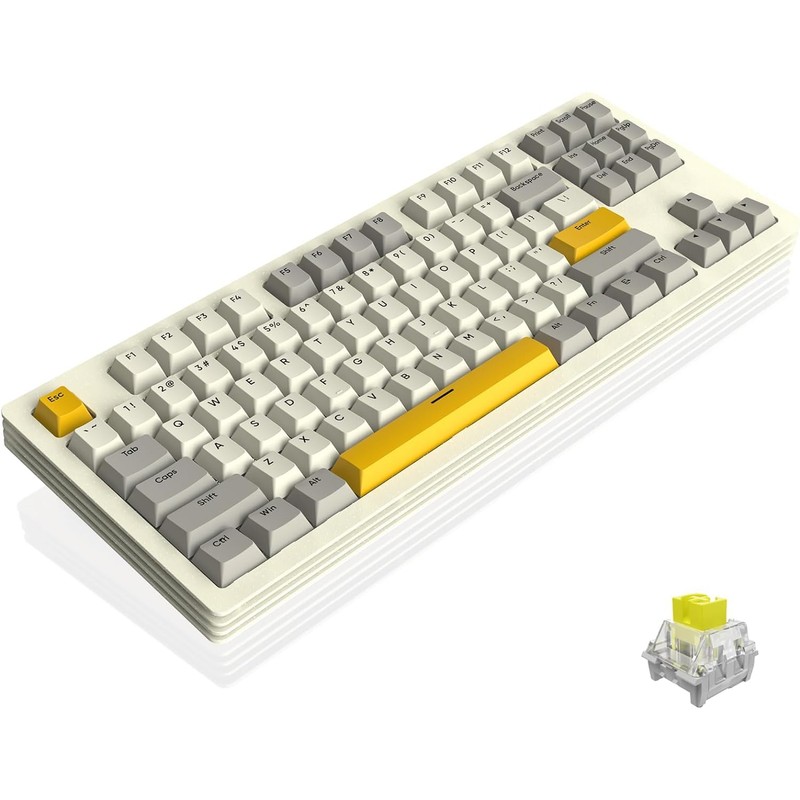 AKC087 Wireless Mechanical Keyboard, 87 Keys Compact TKL Gaming Keyboard, BT5.0/2.4G/Wired 75% Keyboard, RGB Hot Swappable Mechanical Keyboard OEM Profile Yellow Switch for Windows Mac Laptop