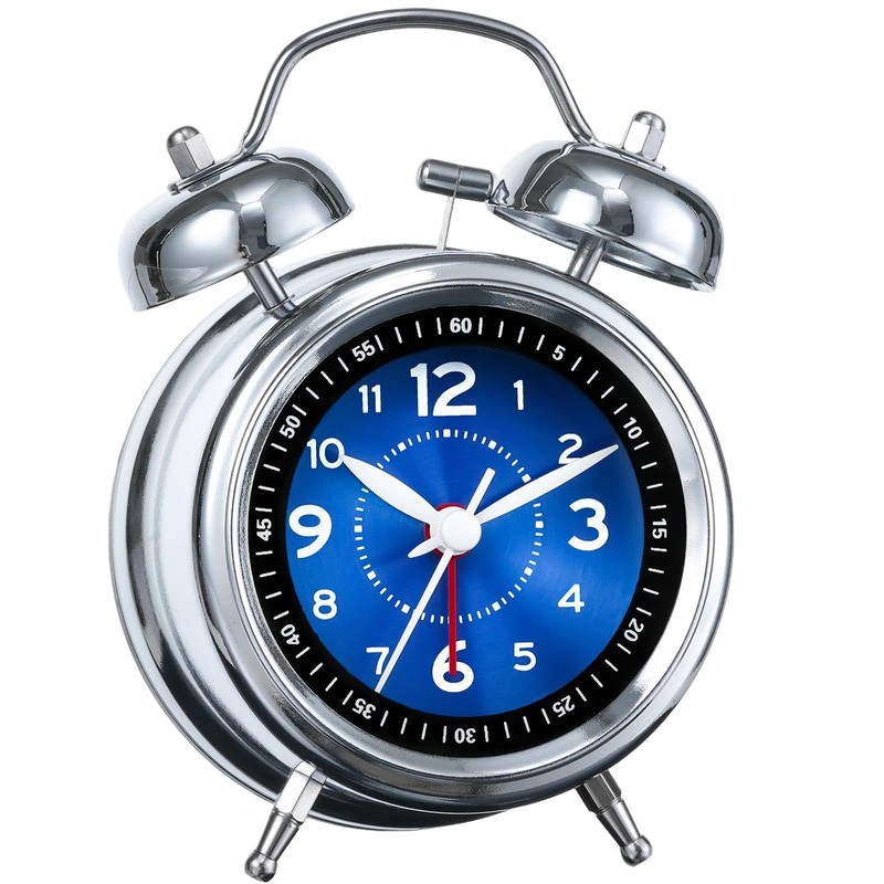 AKCISOT Loud Alarm Clock for Heavy Deep Sleepers,3 Inches Analog Metal Twin Bell Clocks Battery Operated with Backlight for Bedroom Bseide, Old Fashioned for Desk Home Decoration (Blue)