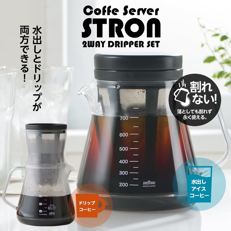 Akebono Stolon Coffee Server, 400, 2-Way Dripper Set, White, For Drip Coffee and Cold Brew Coffee