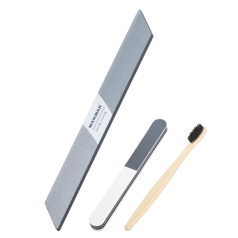 - Semi-permanent use with this one piece guarantee: Since it is tempered glass, clogs can be cleaned with water and will not rust. Even if you manage it, you can use it permanently. Comes with a storage case for safe and clean storage. Includes a shaving brush to remove sanding clogs easily and maintain maximum cutting power every time