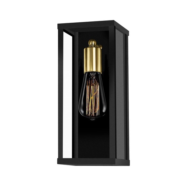 AKEZON 1-Light Outdoor Wall Sconce, Exterior Porch Light Wall Mount Lantern, Matte Black & Brushed Brass Finish with Clear Glass, KW-7224