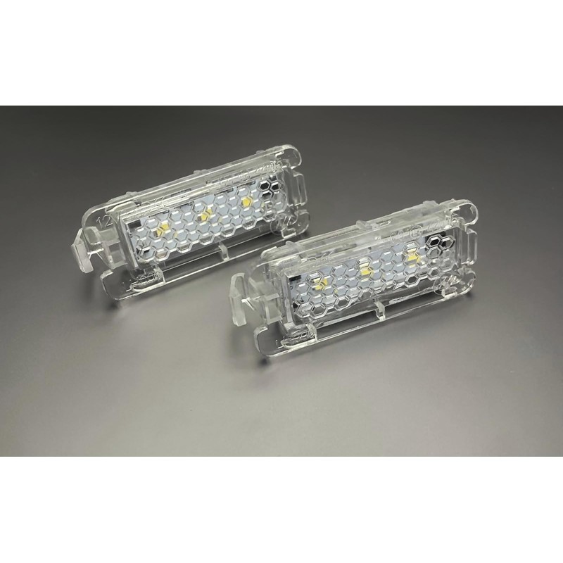 Number plate lighting: high-quality SMD LED light units. Cool white light equivalent to 6000K-6500K. Suitable for Can-Bus without error message. Registration free with E-approval. Easy installation plug and play, no modification of wiring required. Compatible with on-board computer and original connectors.