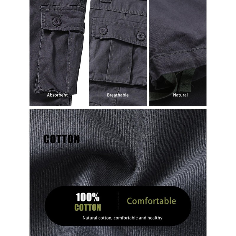- Product Material:This cargo pants for men use 100% cotton fabric, treated for ease of care with a wrinkle-resistant finish and durability,which is soft,breathable and sweat-absorbent,durable and tough,can repel the stains, liquids and soil keep you all day dry and clean.