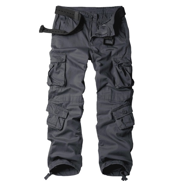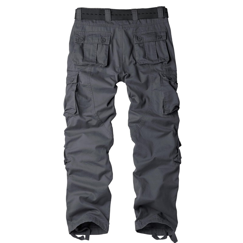 - Product Design:Classic cargo pants with 8 pockets;they are all three-dimensional design,2 flat slant pockets for hands-free use and convenient access,4 cargo pockets provide secure equipment storage,2 back buttoned pockets provide deep, secure storage that makes it easier to carry additional personal things,also,one left front zipper fake pocket is a good decoration..Designed with a relaxed fit through the seat and thigh, these men's casual wear will keep you comfortable during any task.
