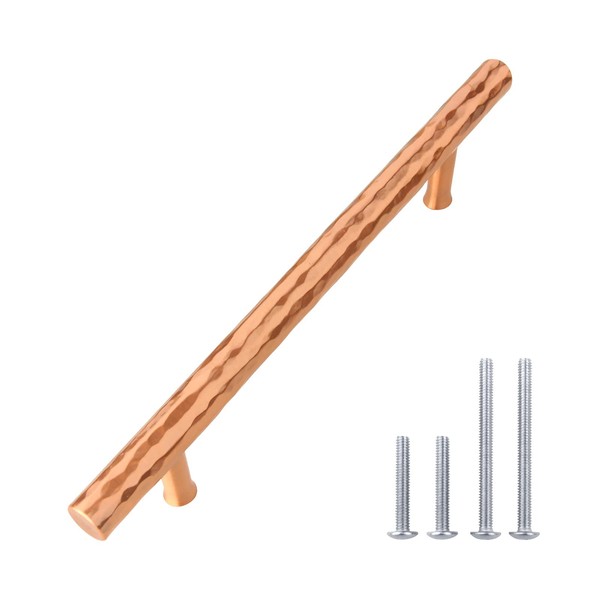 Akicon 5 Inch Hole Center Hammered Copper Kitchen Cabinet Handle 100% Solid Brass Drawer Pull(5-Pack)