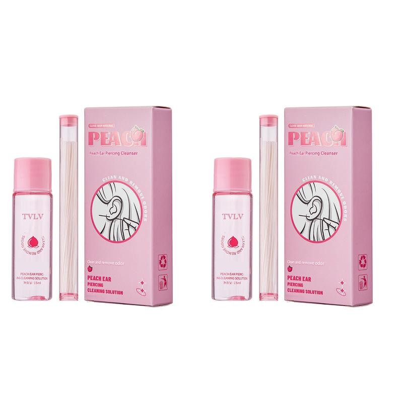 AKIESY Ear Hole Cleaning Thread, Peach-Scented Deodorizing Ear Cleaning Solution, Piercing Holes Clean Kit, 60/120/180 lines set 1Psc:_2psc set