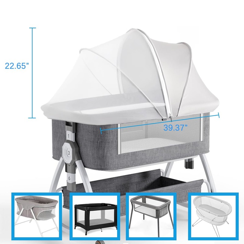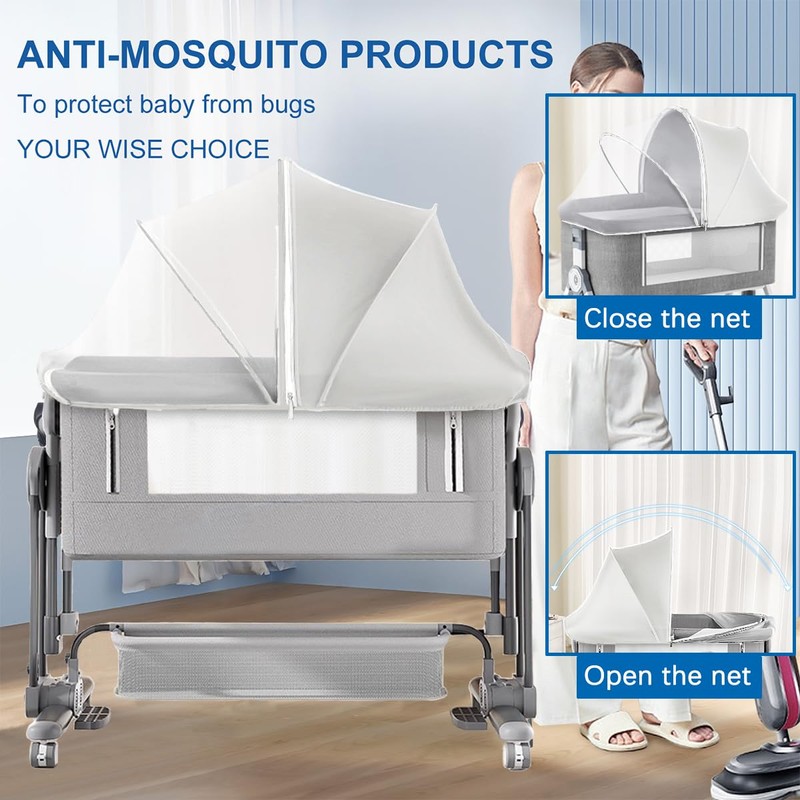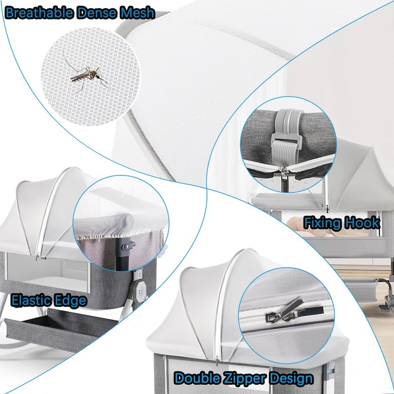 Akiky Portable Bassinet Bedside Sleeper Cover Semi-Sunshade Mosquito Net for Baby Infant Bed Sleeper Cover Mesh Net with Zip-up Window(Gray)