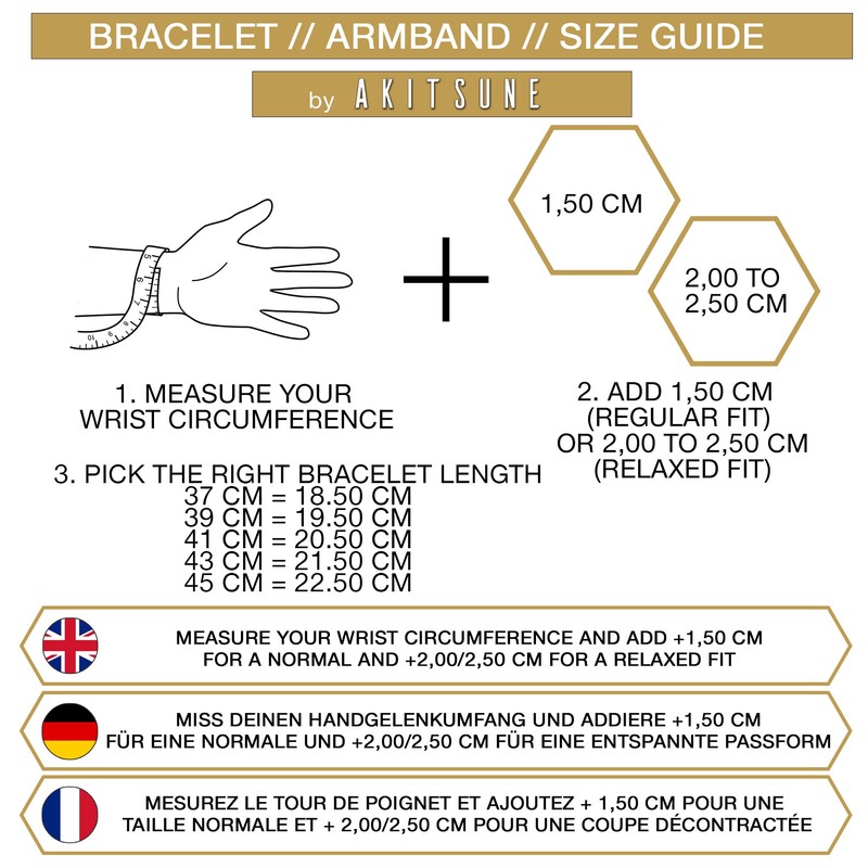 - Choice of sizes: the bracelet is available in 3 sizes - 37 cm, 39 cm or 41 cm total length to choose from. You can find your suitable size using the size chart in the pictures for offer. Please avoid contact with water for a long service life of the bracelet.