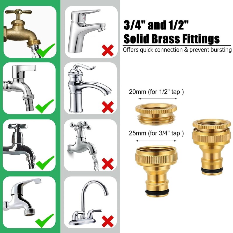 - 【Weit anwendbar】 Der Wasserhahnadapter ist für den Innen- und Außenbereich geeignet und kann in verschiedenen Bereichen wie Gartenarbeit, Autowäsche und Bewässerung verwendet werden. Sie sind für die meisten Standard-Gartenschläuche und -hähne geeignet, aber Sie müssen bestätigen, ob die Produktgröße für Ihren Wasserhahn geeignet ist!