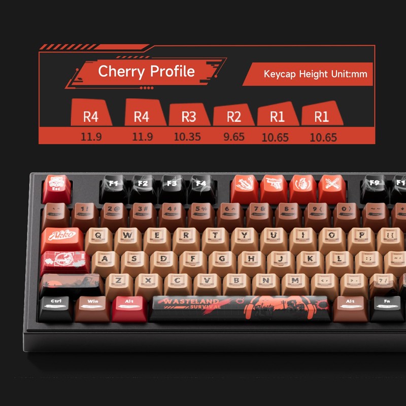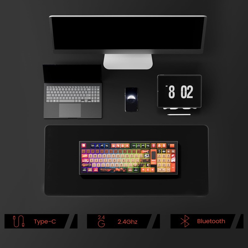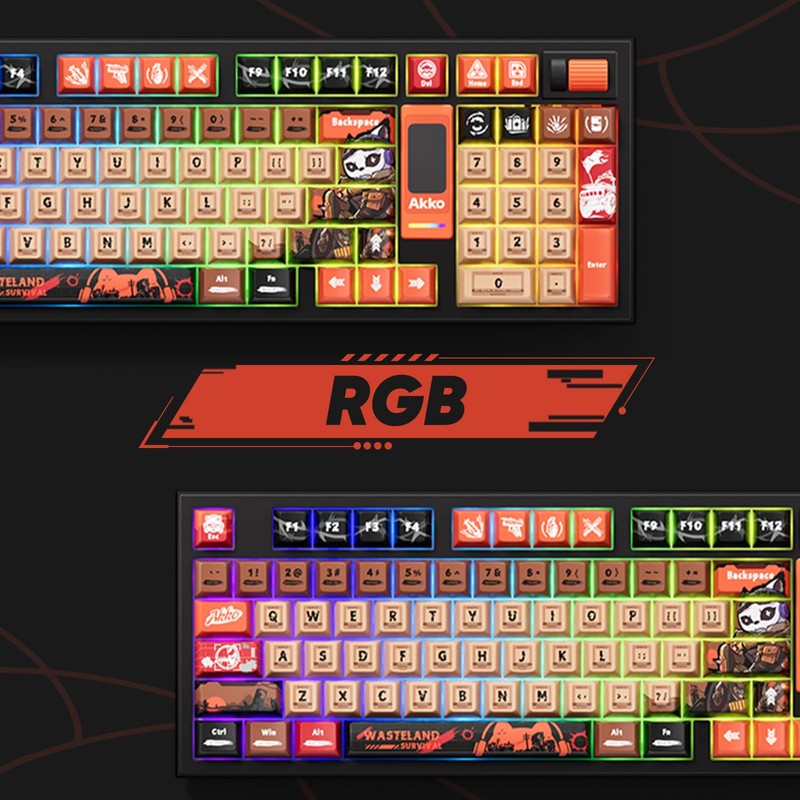 - 1800 Layout Wasteland Survival Gaming Keyboard: The keyboard's inspiration comes from the idea of survival in a vast wasteland. Akko's Stellar Cat loses its homeland and embarks on an interstellar journey, eventually landing in a desolate wasteland. The mechanical keyboard gives off an ultimate cool vibe and the 1800 compact layout is ideal for workplace with its numberpad