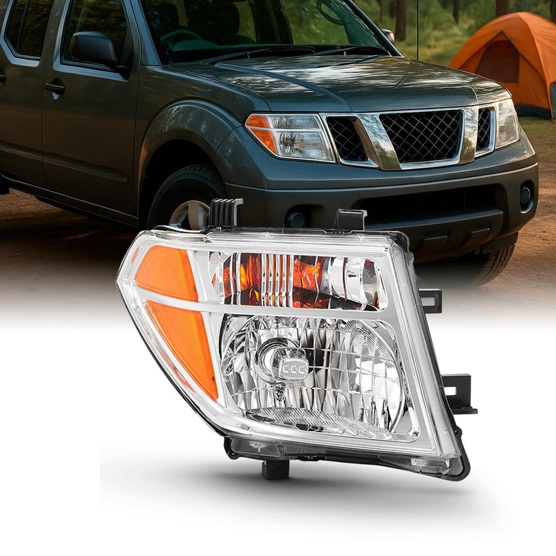 AKKON - Chrome Headlight Fits 2005-2008 Frontier 2005-2007 Pathfinder [Halogen Models] Replacement Passenger Right Side