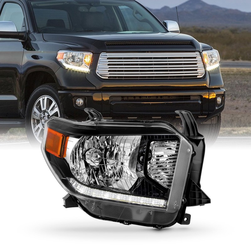 AKKON - Fit 2014-2021 Toyota Tundra Pickup Halogen Type w/LED DRL Headlight Headlamp OE Style Black Housing Passenger Right Side Direct Replacement