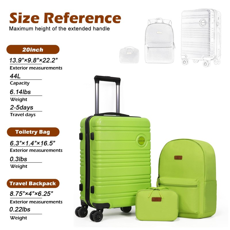 Aklsvion ABS+PC Carry on Luggage set with backpack 3 Pcs suitcace with Spinner wheels TSA Lock 20-In hardshell Lightweight Luggage set (Lime)